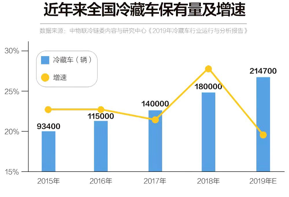 據(jù)中國(guó)物流與采購(gòu)聯(lián)合會(huì)冷鏈物流專業(yè)委員會(huì)(簡(jiǎn)稱“中物聯(lián)冷鏈委”)的不完全統(tǒng)計(jì),自2013年我國(guó)冷藏車產(chǎn)量超過(guò)萬(wàn)輛,到2018年期間都以超過(guò)20%的年增長(zhǎng)率持續(xù)快速增長(zhǎng),截至2019年11月全國(guó)冷藏車市場(chǎng)保有量已突破21萬(wàn)輛,年增長(zhǎng)率較上年有所下滑,約為19.3%,進(jìn)入穩(wěn)步增長(zhǎng)階段。